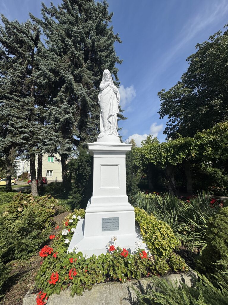 Z radością informujemy, że figura Matki Bożej Niepokalanie Poczętej, znajdująca się na terenie naszej szkoły, została poddana gruntownej renowacji. Dzięki temu zabiegowi odnowiona figura odzyskała swój dawny blask i znów może cieszyć oczy wszystkich odwiedzających.