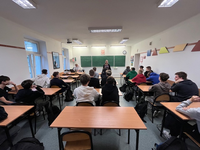 W klasie piątej zajęcia zostały poświęcone tematowi stresu przedmaturalnego, który dotyka wielu uczniów w ostatnich latach nauki. Pani Beata Michalik omówiła najczęstsze źródła napięcia związane z przygotowaniami do matury oraz oczekiwaniami stawianymi młodzieży przez otoczenie i samych siebie. Uczniowie poznali sposoby rozpoznawania sygnałów przeciążenia, a także techniki radzenia sobie ze stresem, takie jak ćwiczenia oddechowe, elementy relaksacji czy skuteczne metody organizacji czasu.