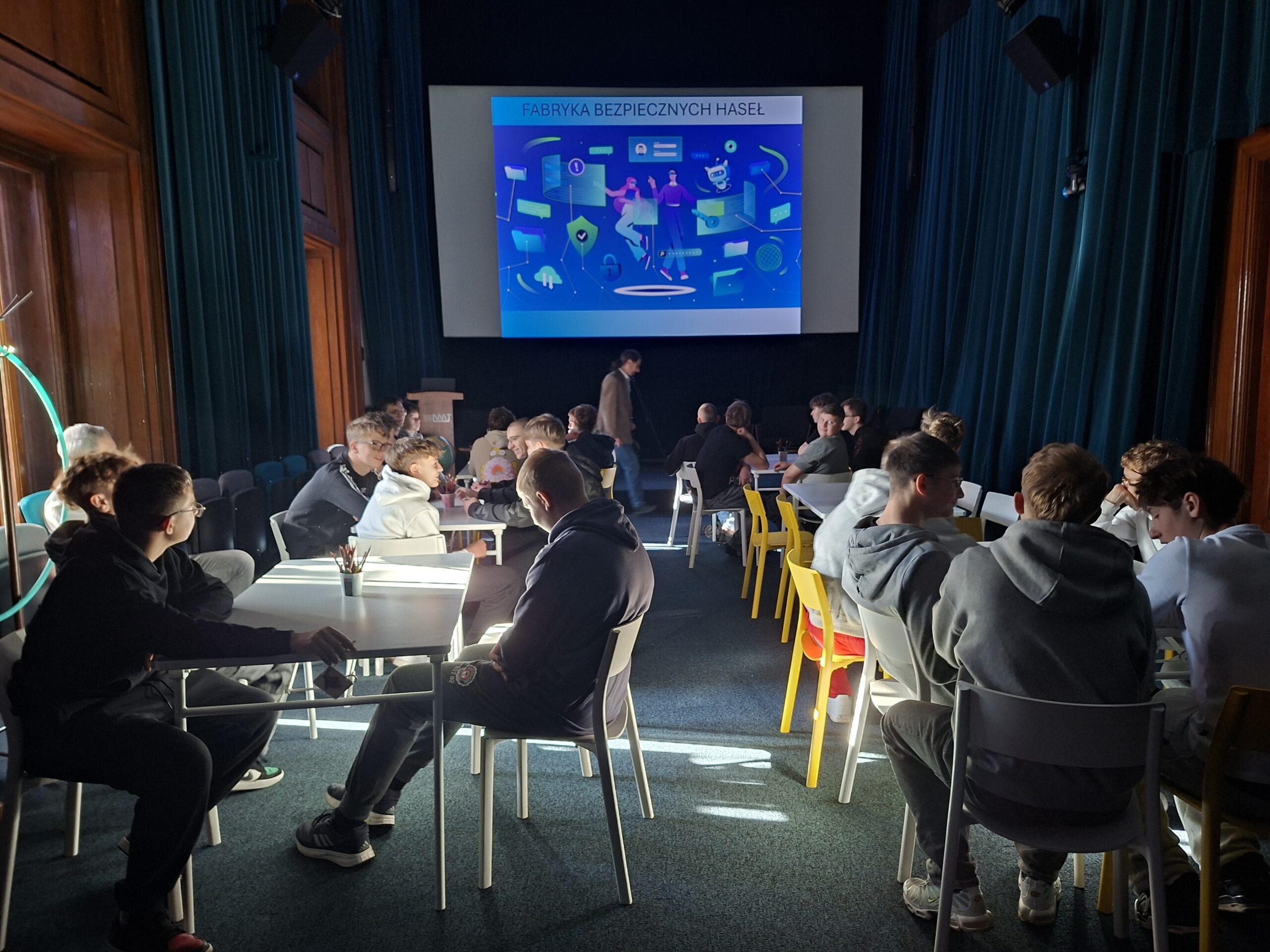 7 listopada uczniowie klasy 1b pod opieką p. Katarzyny Lech i p. Grzegorza Rudnika odwiedzili Narodowe Muzeum Techniki w Warszawie, gdzie wzięli udział w zajęciach dotyczących cyberbezpieczeństwa. Edukator zapoznał młodzież z metodami tworzenia bezpiecznych haseł, sposobami obliczania ich siły oraz zwrócił uwagę na typowo popełniane błędy przy ich ustanawianiu. Szczególny nacisk został położony na znaczenie cyberbezpieczeństwa w życiu prywatnym i zawodowym. Po zakończonej lekcji uczniowie zwiedzili wystawę „Historia komputerów. Liczy się!”, a następnie swobodnie eksplorowali wystawy stałe i rozmawiali z pracownikami muzeum o szczególnie interesujących ich obiektach.