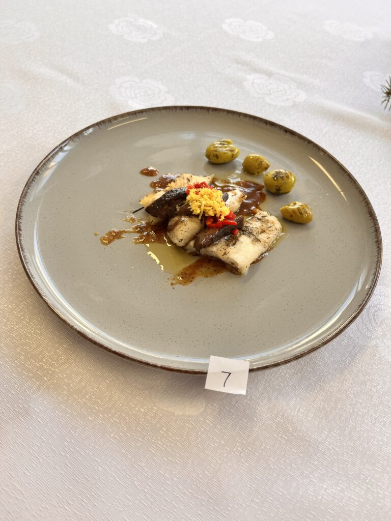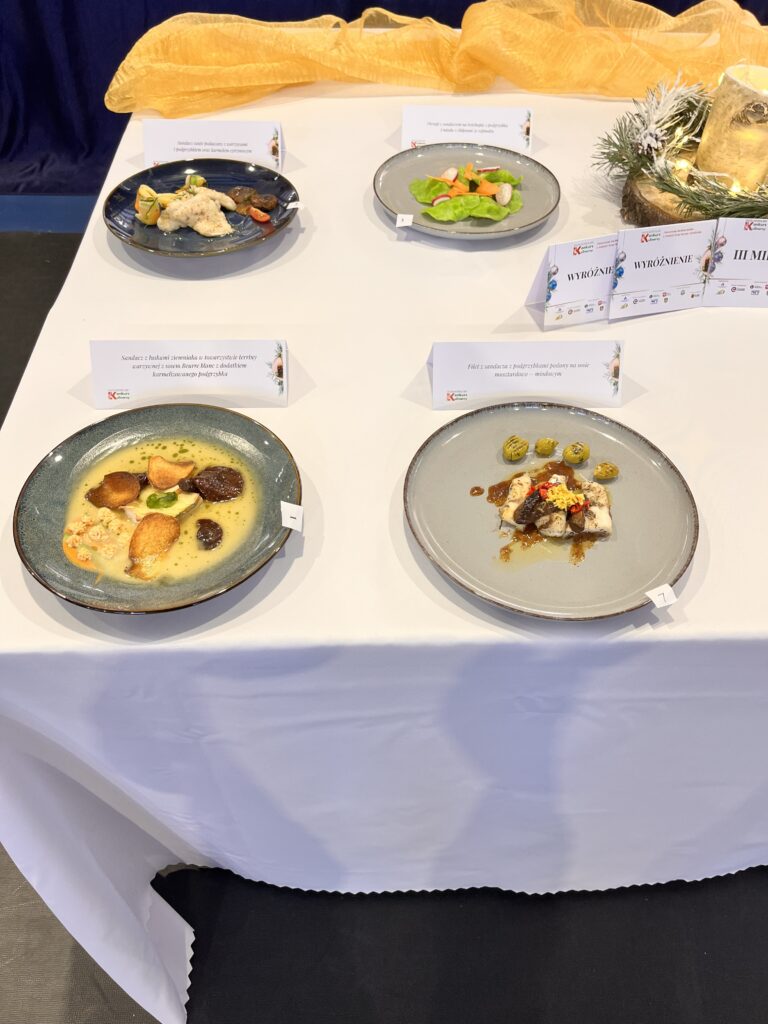 Nasz zespół zaprezentował danie: filet z sandacza z podgrzybkami, podany na sosie musztardowo-miodowym.