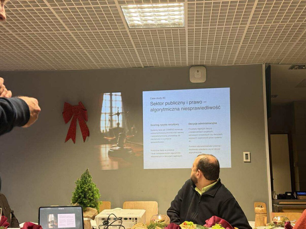 Miłym akcentem po zakończonym wykładzie była wspólna, symboliczna wigilia. Była ona czasem rozmowy w mniej formalnej atmosferze i okazją do wymiany wrażeń oraz spędzenia chwil w świątecznej atmosferze.