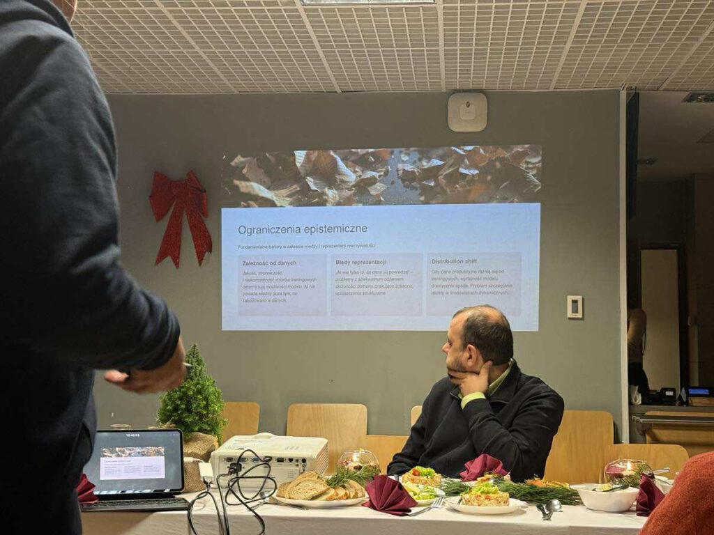 Uczestnicy spotkania poznali także słabe punkty modeli AI, do których zaliczają się m.in. podatność na manipulacje oraz ryzyko wykorzystywania tzw. zatrutych danych. Chodzi tu o sytuacje, w których treści generowane przez AI trafiają do internetu, na przykład na Wikipedię, a następnie są ponownie wykorzystywane jako materiał treningowy, co prowadzi do powstawania błędnego koła i narastającej dezinformacji.