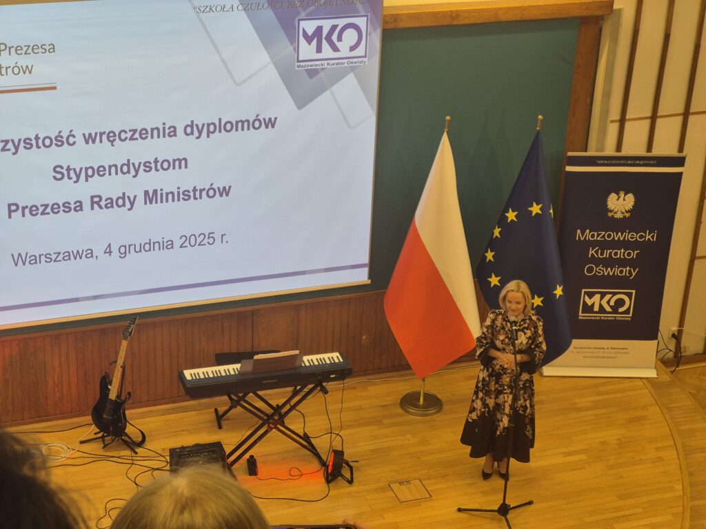 4 grudnia 2025 r. w auli głównej Szkoły Głównej Handlowej odbyło się wręczenie stypendiów Prezesa Rady Ministrów. W wydarzeniu wzięli udział laureaci z całego regionu, którym towarzyszyli rodzice, nauczyciele oraz dyrektorzy szkół.