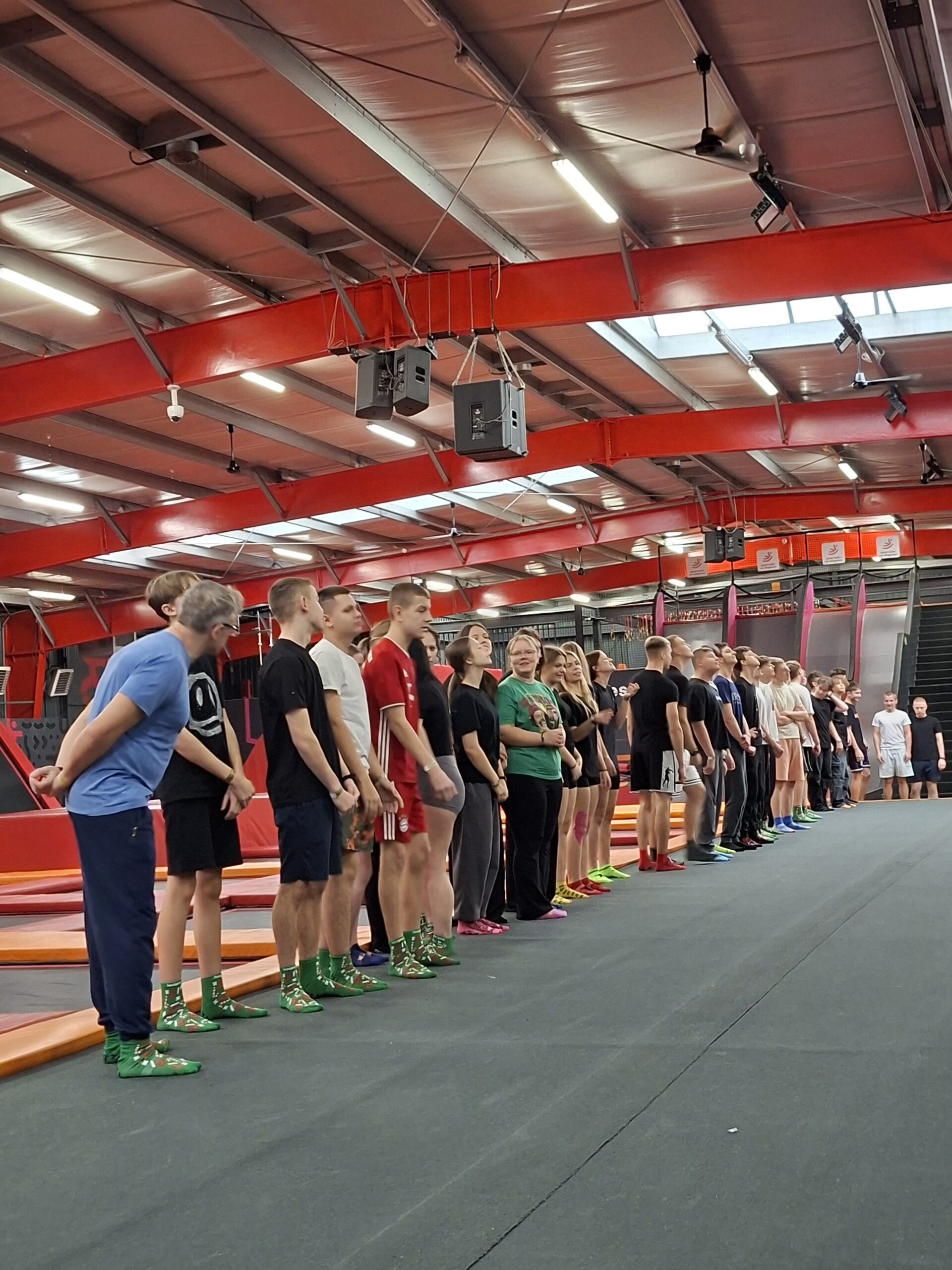 warszawskim Targówku. Po krótkiej rozgrzewce trenerzy z parku trampolin