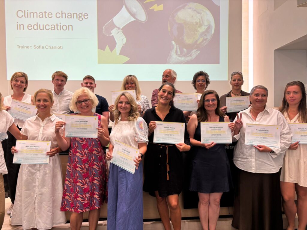 Nauczyciele z Hiszpanii, Irlandii, Słowacji, Niemiec, Węgier i Polski wspólnie zgłębiali wiedzę o klimacie, przyczynach zmian klimatycznych i możliwych rozwiązaniach problemów środowiskowych. Celem szkolenia było wyposażenie nauczycieli w wiedzę umożliwiającą włączenie zagadnień klimatycznych do nauczania młodzieży, jak pomóc uczniom ocenić wpływ ich codziennych nawyków na zmiany klimatu i jak projektować działania edukacyjne na ten temat. Brali udział w grach, quizach i dyskusjach na temat zrównoważonych praktyk z zakresu ochrony klimatu, aby promować kulturę świadomości klimatycznej w naszych szkołach, kształcąc zaangażowaną ekologicznie młodzież, która rozumie złożoność zmian klimatycznych, ich konsekwencje i pilną potrzebę wspólnych działań.