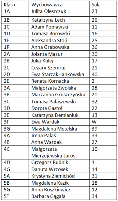 • Sale zebrania z rodzicami w roku szkolnym 2025 / 2026